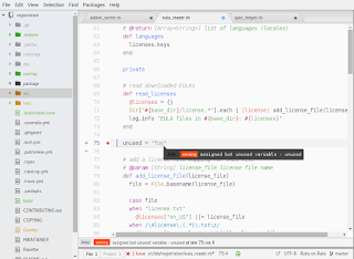 - linter-rubocop - There is also Rubocop linter, but unfortunately it requires a recent version of Rubocop (the version used by YaST is too old).